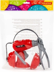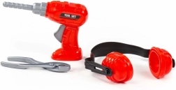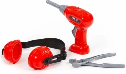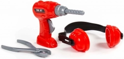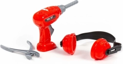 Ten dziecięcy zestaw narzędzi zamieni każdy pokój w mały warsztat. Po naciśnięciu przycisku wiertło w wiertarce zaczyna się obracać, ochronniki słuchu nadają zabawie autentyczności, a szczypce pomagają w „naprawczych” wyzwaniach w trudniej dostępnych miejscach. Wyraźna czerwona kolorystyka i ergonomiczne kształty są dostosowane do wygodnego chwytu i bezpiecznej zabawy.