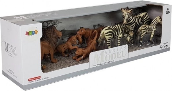- 7 figurek (lew, lwica, 2 lwiątka, 2 dorosłe zebry, 1 źrebak zebry)