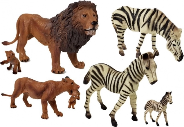 zestaw figurek Afryka – dzikie zwierzęta: rodzina lwów i zebr