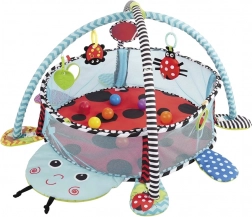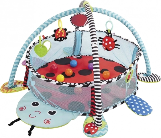 - Mata do zabawy w kształcie biedronki, 2 pałąki z zawieszkami, 30 piłeczek