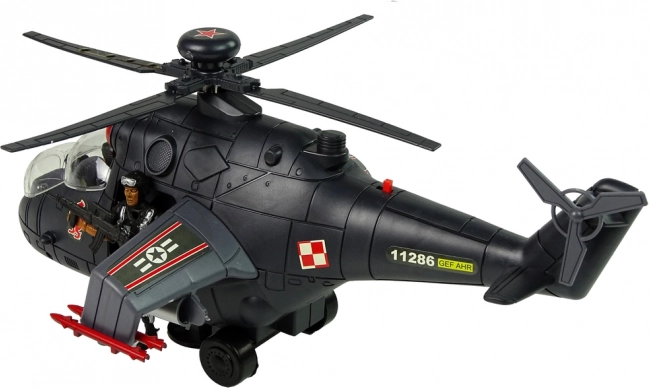 Helikopter jest zaprojektowany w ciemnych kolorach dla łatwiejszej kamuflażu. Dzięki szczegółowemu wykonaniu elementów oferuje realistyczną zabawę. Na kadłubie znajdują się wojskowe naklejki.