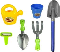 - Zestaw obejmuje wiaderko, doniczkę, łopatkę, konewkę, grabki i szpadel.