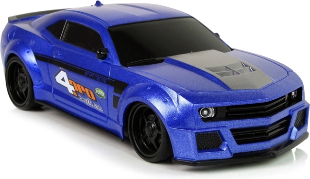 Autko ma lekką i solidną konstrukcję, sportowy design, a szary szeroki pas na masce dodaje drapieżnego charakteru. Intensywny niebieski kolor przyciąga wzrok – nie da się go przeoczyć. Sterowanie to świetna zabawa, zwłaszcza dla najmłodszych, dlatego dołączony pilot pozwala kierować małym modelem auta wyścigowego. Ma dwa oddzielne przyciski do jazdy do przodu/tyłu oraz skręcania.