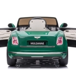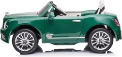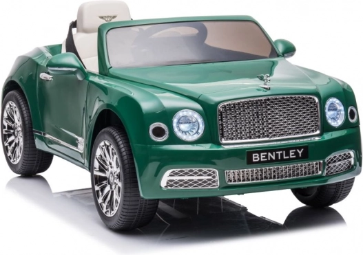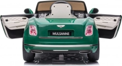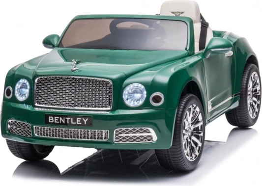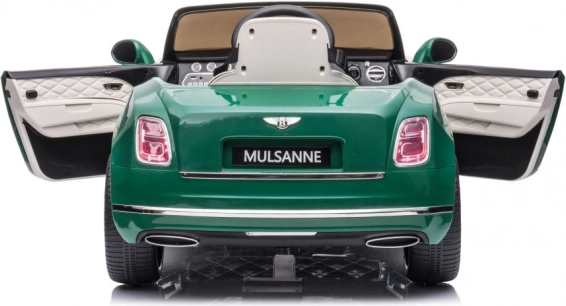 Stylowy dziecięcy elektryczny samochód Bentley Mulsanne w zielonym kolorze zapewnia dzieciom realistyczne wrażenia z jazdy. Ma 2 silniki 35 W, akumulator 12V/7Ah, zdalne sterowanie 2,4 GHz z trzema prędkościami i przyciskiem STOP, piankowe koła EVA dla cichej jazdy, płynny start (Slow Start), przednie i tylne światła LED, otwierane drzwi z blokadą, panel audio z MP3/USB/AUX oraz siedzenie z ekoskóry z pasami bezpieczeństwa.