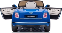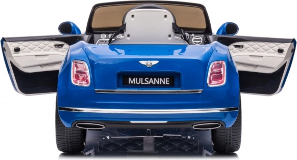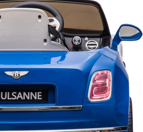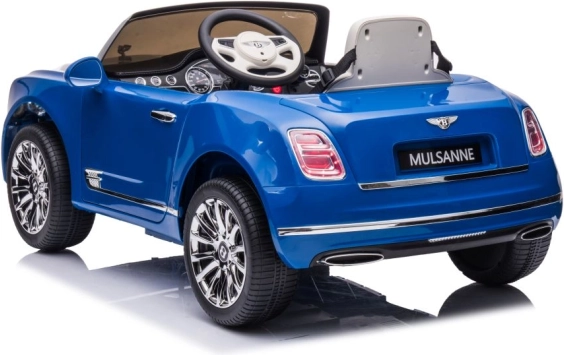 Stylowy dziecięcy elektryczny samochodzik inspirowany luksusowym BENTLEY MULSANNE w atrakcyjnym niebieskim kolorze ucieszy małych kierowców realistycznymi detalami, wygodnym siedzeniem i możliwością jazdy. Oferuje otwierane drzwi, pas bezpieczeństwa oraz realistyczne sterowanie dla zabawnej i bezpiecznej jazdy w domu i w ogrodzie.