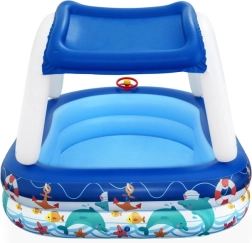Bestway Sea Captain to idealny wybór do bezpiecznej i pełnej zabawy wodnej rozrywki w ogrodzie. Zdejmowany daszek z ochroną UV chroni wrażliwą dziecięcą skórę przed słońcem, a morskie motywy przyciągają uwagę od pierwszego spojrzenia. Basen wykonano z wytrzymałego winylu, więc bez trudu sprosta codziennym letnim przygodom.