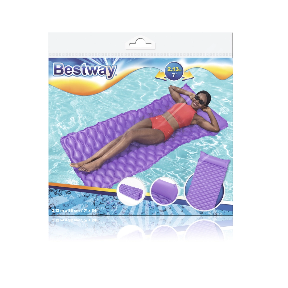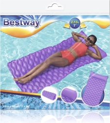 Pływający leżak Bestway wyróżnia się wygodnym kształtem ze zintegrowaną poduszką, która podpiera głowę i szyję. Pofalowana powierzchnia zwiększa komfort leżenia, a solidne PVC zapewnia długą żywotność i odporność na drobne uszkodzenia.