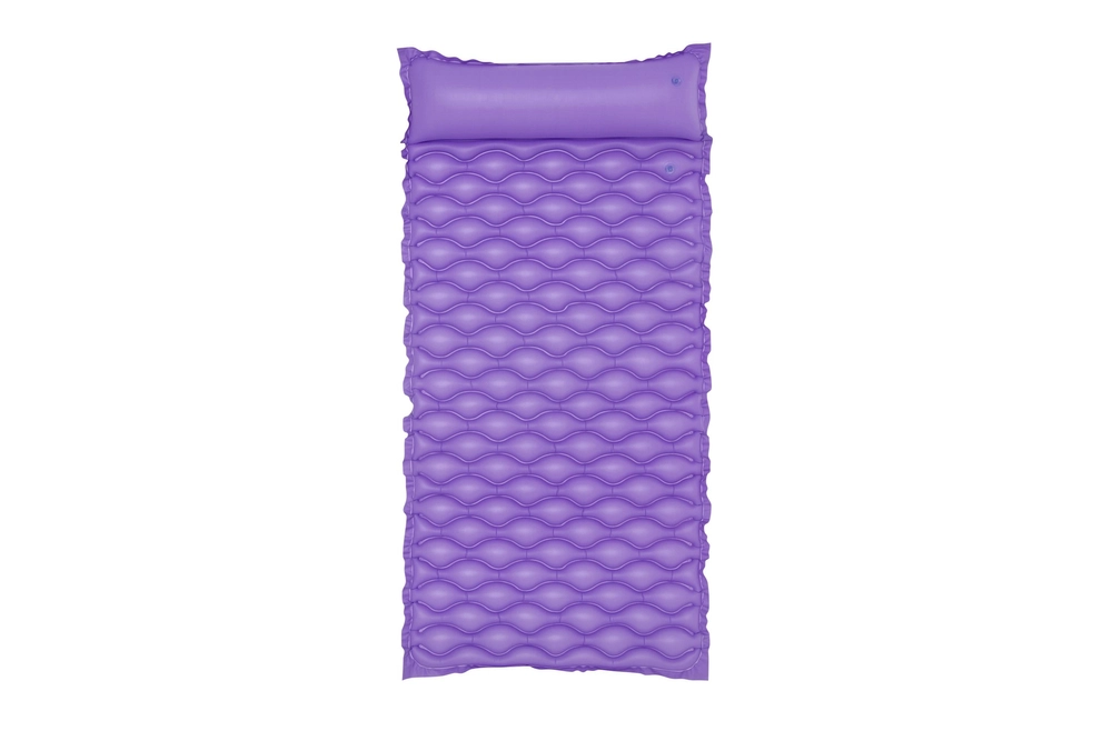Wbudowana nadmuchiwana poduszka zapewnia przyjemne podparcie głowy i karku, dzięki czemu w pełni odpoczniesz.