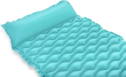 Wbudowana dmuchana poduszka zapewnia przyjemne podparcie głowy i karku, dzięki czemu odpoczniesz wygodniej i dłużej.