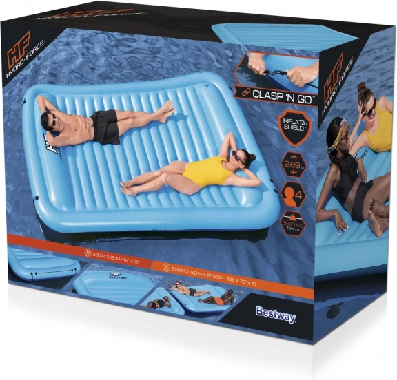 Duży nadmuchiwany pływający raj Hydro-Force Sun Soaker marki Bestway został zaprojektowany dla osób, które lubią spędzać urlop w większym gronie. Dzięki imponującym wymiarom z łatwością pomieści do czterech dorosłych, a wbudowana poduszka na całym obwodzie pozwala każdemu wygodnie opalać się na słońcu. Wbudowane zatrzaski Clasp 'N Go umożliwiają łączenie kilku pływających wysp razem, zapewniając jeszcze więcej zabawy z przyjaciółmi w większej grupie! Materiał Inflata-Shield zapewnia odporność na przebicia i ogranicza rozciąganie.