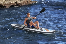 Dzięki siedzisku paddleboard Hydro-Force White Cap można łatwo przekształcić w kajak, co zapewnia większą elastyczność podczas aktywności na wodzie.