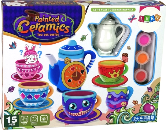 Zestaw zawiera wszystko, co niezbędne do zdobienia porcelanowej zastawy herbacianej - od czajnika po filiżanki i talerzyki. Dzieci mogą zdobić zastawę własnymi wzorami i obrazkami, co pozwala im w pełni wykorzystać swoją wyobraźnię. Każdy element zastawy staje się unikalnym dziełem sztuki.
