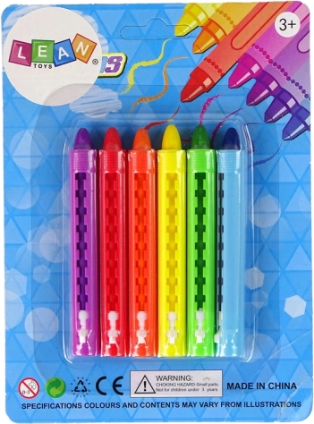 Wymiary kredki: długość 9 cm. Wymiary opakowania: 17 cm x 13 cm x 3 cm. Produkt zgodny z normą EN71 i posiada certyfikat CE. Przeznaczony dla dzieci od 3 lat.