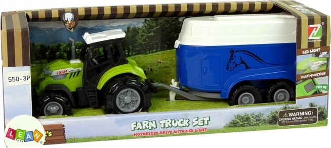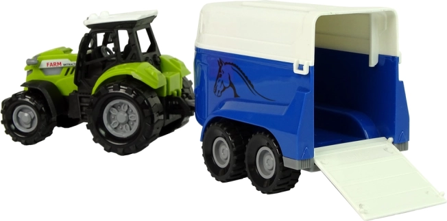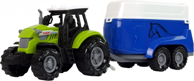 Traktor z przyczepą do koni z dźwiękiem, zielony zestaw farmerski