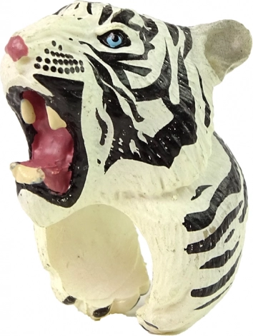 Odkryj świat zwierząt z oryginalnym pierścionkiem przedstawiającym głowę białego tygrysa. Dzieci ćwiczą wyobraźnię, małą motorykę i ekspresję podczas tworzenia własnych historii oraz mini przedstawień. Wytrzymałe wykonanie i wyraziste kolory sprawią, że pierścionek szybko stanie się ulubionym dodatkiem.