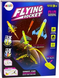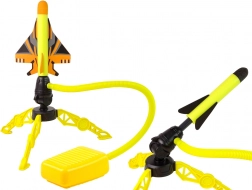 Złóż podstawę, nałóż rakietę na dyszę, naciśnij stopą pompkę i zobacz, jak rakieta wzbija się wysoko w powietrze. Prosty mechanizm na sprężone powietrze bez kabli i baterii gwarantuje szybką i intuicyjną zabawę wszędzie – w ogrodzie, w parku i w domu.