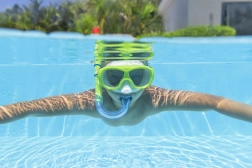 Odkrywaj podwodny świat z lekkim i wytrzymałym zestawem BESTWAY. Maska z uszczelniającym kołnierzem świetnie przylega do twarzy, hartowane szkło gwarantuje czysty widok i wyższą odporność na zarysowania. Fajka z wygodnym ustnikiem została zaprojektowana do długiego i spokojnego oddychania podczas pływania przy powierzchni.