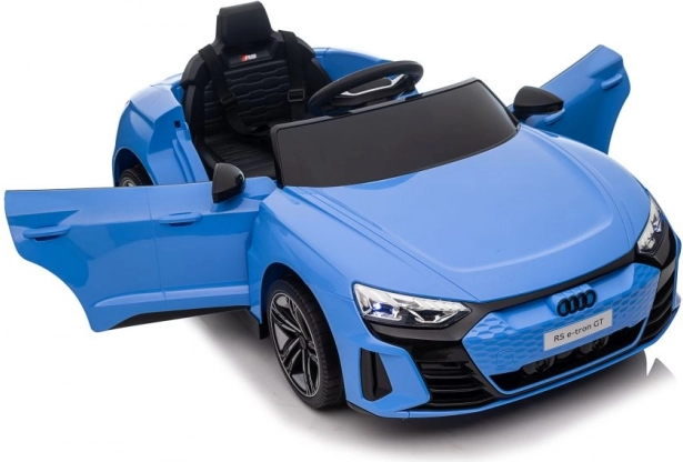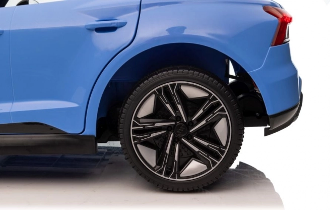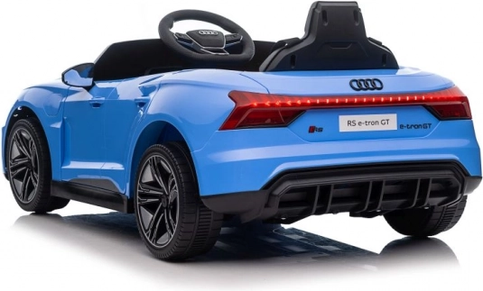 Niebieski elektryczny samochodzik został szczegółowo zaprojektowany na wzór prawdziwego modelu Audi RS e-tron GT, w tym realistycznych reflektorów i lusterek.