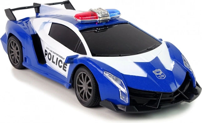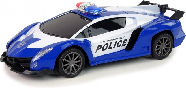 Wyrusz na policyjny pościg sportowym autem RC w niebiesko-białej kolorystyce. Realistyczne koguty LED i dynamiczny wygląd pobudzają dziecięcą wyobraźnię, a ergonomiczny kontroler zapewnia płynne i precyzyjne sterowanie. Świetny pomysł na prezent – zapakowany w ozdobne pudełko z okienkiem i z certyfikatem CE.