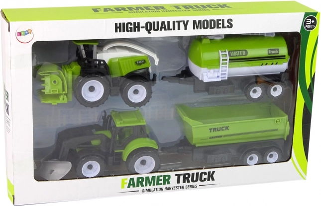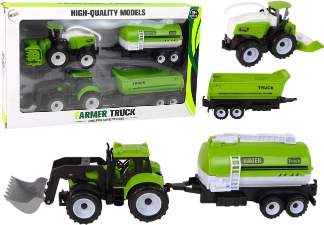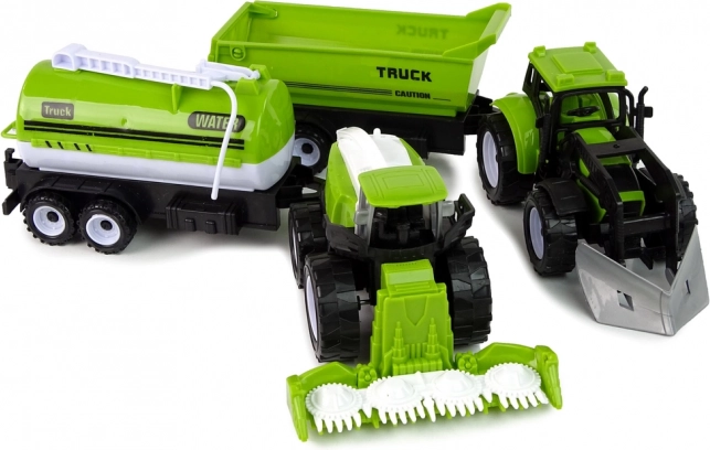 Ten kompleksowy zestaw maszyn rolniczych zapewnia dzieciom autentyczne wrażenia z pracy w polu. Traktor z przednim ładowaczem, kombajn i przyczepy (cysterna na wodę oraz przyczepa ładunkowa) pozwalają łatwo symulować nawadnianie, zbiory i przewóz materiałów. Dzięki realistycznemu wykonaniu i wytrzymałemu plastiku sprawdzi się w pokoju dziecięcym, w ogrodzie i w piasku.