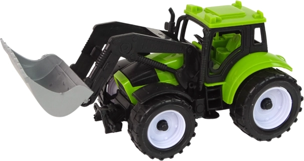 Traktor wyposażony jest w przedni ładowacz, który można podnosić i opuszczać. Świetny do załadunku „ziarna” lub piasku i rozwoju motoryki małej.