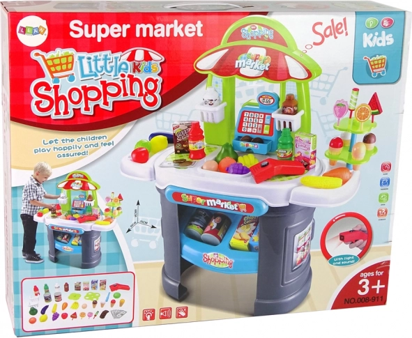 Ręczny skaner podczas odczytu towaru wydaje piknięcie i czerwone światło, co dodaje zabawie autentyczności. Zestaw obejmuje kasę, banknoty i monety, stoisko ze słodyczami, makiety produktów i napojów oraz szereg kartonowych i plastikowych opakowań. Wysoka jakość wykonania i certyfikowane materiały zapewniają bezpieczną zabawę dla dzieci od 3 lat.