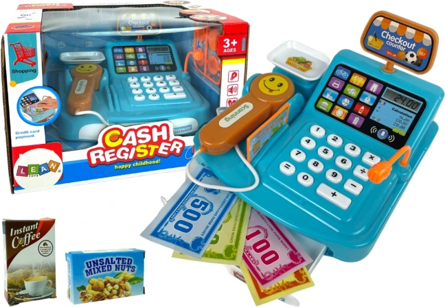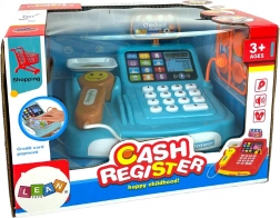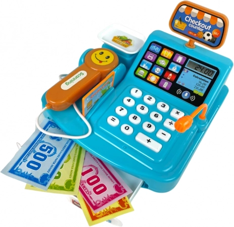Zabawna dziecięca kasa w niebieskim kolorze z wagą, skanerem i czytnikiem kart zamieni każdy dzień w realistyczną zabawę w sklep. Wspiera naukę liczenia, rozpoznawanie pieniędzy i rozwój komunikacji. Skaner wydaje realistyczne dźwięki jak w supermarkecie, a zestaw zawiera także monety i pudełko z ciasteczkami dla jeszcze bardziej autentycznych wrażeń.