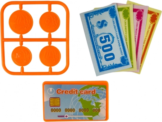 Kolorowe banknoty, monety i karta płatnicza wspierają edukację finansową i w przystępny sposób wyjaśniają wartość pieniędzy.
