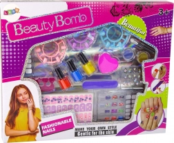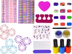 Ten zestaw zawiera kilka kolorowych lakierów do paznokci oraz różnokolorowe naklejki. Klasyczne, we wzory i brokatowe pozwolą pięknie pomalować paznokcie, a następnie szybko i łatwo je zmyć zwykłym zmywaczem.