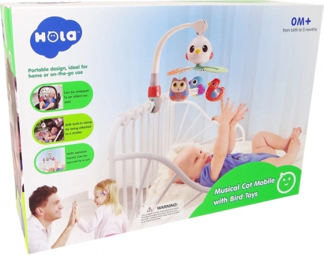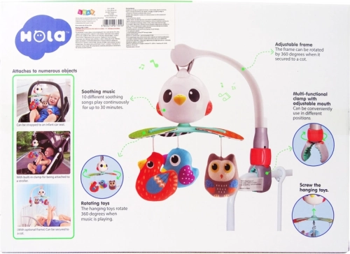 Karuzela muzyczna do łóżeczka i wózka z kolorowymi ptaszkami