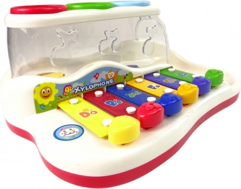 Sześć jasno kolorowych klawiszy po stuknięciu palcem lub młoteczkiem wydaje przyjemne tony i zachęca dzieci do tworzenia pierwszych melodii.