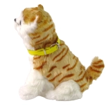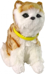 Ten realistyczny pluszowy kocurek w biało-rudym umaszczeniu z brązowymi prążkami i żółtą odpinaną obrożą oczaruje każde dziecko. Po pogłaskaniu po głowie ożywa – delikatnie miałczy i uroczo porusza głową oraz ogonem. Miękkie i przyjemne w dotyku włoski sprawią, że stanie się ulubionym towarzyszem do łóżka i w podróży.