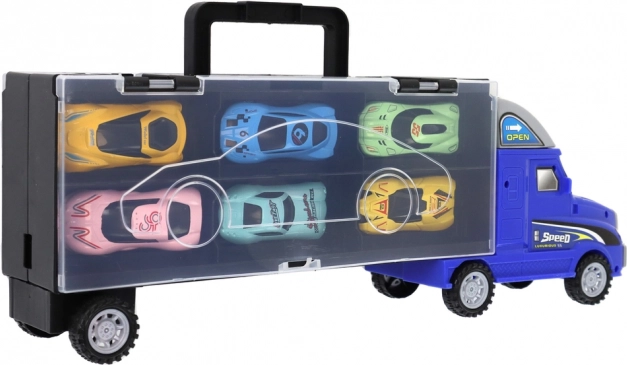 Ciężarówka z przyczepą oferuje możliwość przechowywania nawet 12 małych wyścigowych autek.