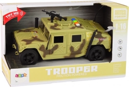 Stworzona dla małych żołnierzy, którzy podziwiają wojskową technikę. To wojskowe pojazd może pochwalić się szerokim korpusem i realistycznym wzornictwem, które obejmuje dachowy pistolet naśladujący prawdziwe wojskowe auto. Ożyw grę efektami dźwiękowymi, w tym klaksonem, strzałami i rozruchem silnika, towarzyszące przednie światła zwiększają autentyczność gry.