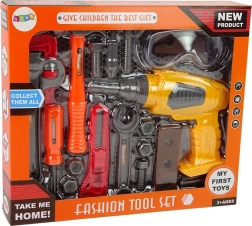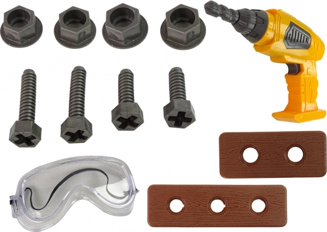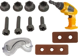 Ten zestaw jest wyposażony w wiertarkę na baterie, która symuluje prawdziwe wiercenie i wydaje realistyczne dźwięki. Zawiera także klucze, śrubokręt, młotek i inne narzędzia do kreatywnej zabawy. Wszystkie elementy są bezpiecznie przechowywane w kolorowym opakowaniu, które samo w sobie przywodzi na myśl prawdziwe narzędzia.