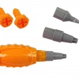 Zestaw zawiera śrubokręt z wygodnym uchwytem i wymiennymi bitami, oferujący realistyczne doświadczenie montażu.