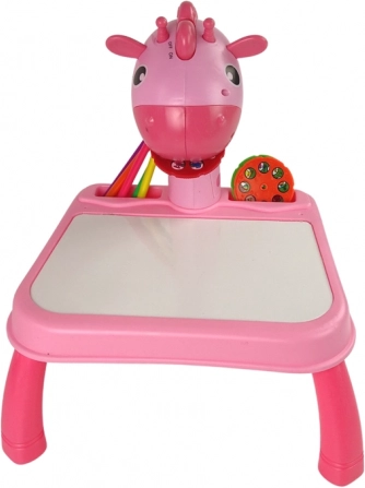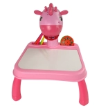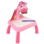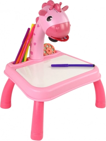 Różowy dziecięcy stolik projekcyjny z żyrafą wyświetla 24 motywy, ułatwia odrysowywanie i naukę rysowania. W zestawie znajduje się 12 kolorowych flamastrów, zeszyt i gąbka. Nie brakuje oświetlenia i 12 melodii, powierzchni suchościeralnej oraz regulacji ostrości dla płynnej i kreatywnej zabawy.