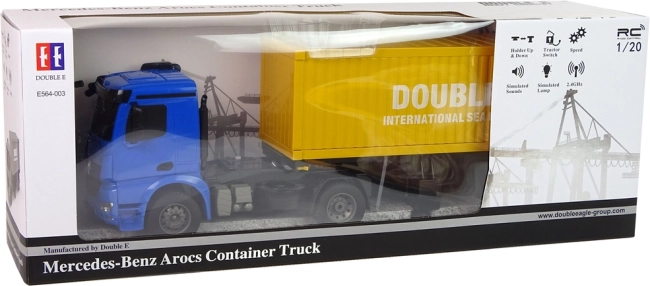 Duży samochód ciężarowy R/C Mercedes Arocs Blue 1:20 Kontener 58 cm długości
