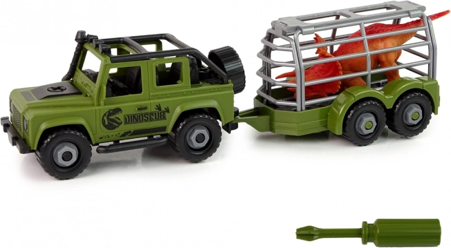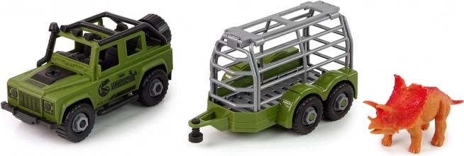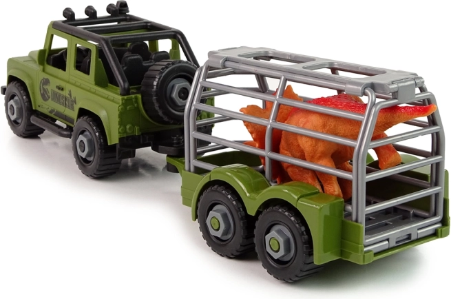 Przyczepa ma formę klatki, dzięki czemu mały odkrywca ma pewność, że dinozaur nie ucieknie i nie zrobi sobie krzywdy. Można ją w każdej chwili odczepić i bawić się samym autem terenowym.