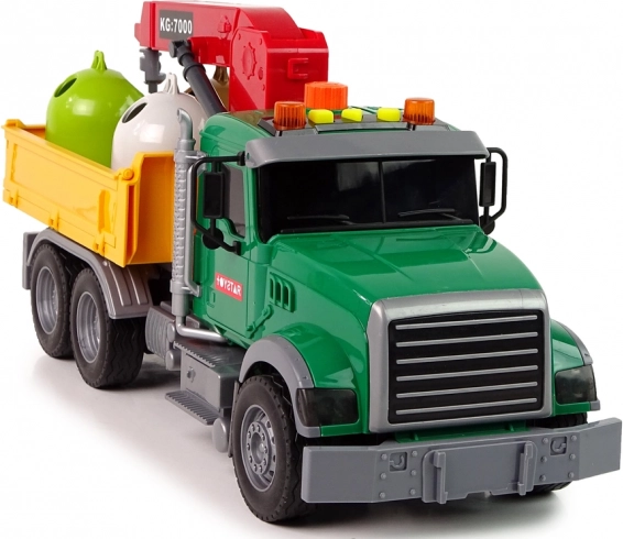 Realistyczne funkcje świetlne i dźwiękowe (migacze, klakson, cofanie) nadają zabawie prawdziwą atmosferę maszyn roboczych. Zabawka ma walor edukacyjny – dzieci przyswajają zasady ekologii i segregacji odpadów, rozwijają małą motorykę i wyobraźnię.