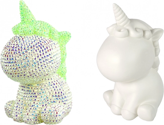 Zestaw zawiera dwa kolory kryształków, którymi można ozdobić jednorożca według własnych upodobań.