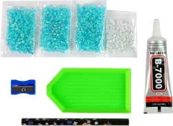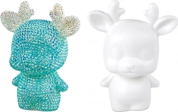 Zawartość zestawu obejmuje wszystko, co niezbędne do stworzenia i dekoracji twojego renifera, w tym kryształy i klej.