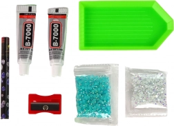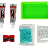 - Brelok renifer, 2× opakowanie kryształków, tacka na kryształki, 2× klej, woskowy rysik, temperówka