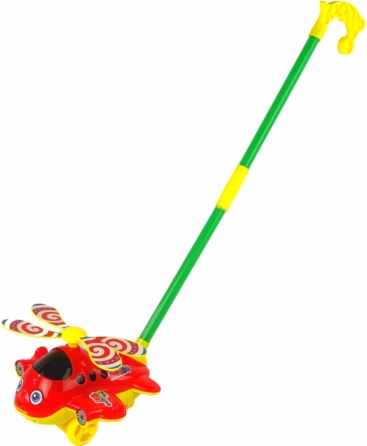Ta zabawka pomaga rozwijać umiejętności motoryczne, ponieważ dzieci mogą ją pchać za pomocą dołączonego drążka.