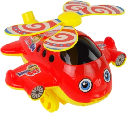 Helikopter ma obracające się wirniki, które wydają dźwięki dzwonienia, a podczas ruchu z przedniej części wysuwają się zabawne elementy. Dołączony drążek umożliwia łatwe pchanie.