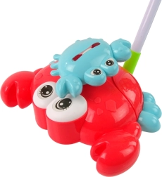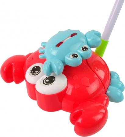 Interaktywna pchająca zabawka krab przynosi dzieciom nie tylko radość, ale także stymuluje ich słuch i wzrok. Kiedy dzieci popychają kraba do przodu, słyszą przyjemny dźwięk dzwoneczka. Duży czerwony krab z małym niebieskim krabikiem na górze, który obraca się przy każdym ruchu do przodu.
