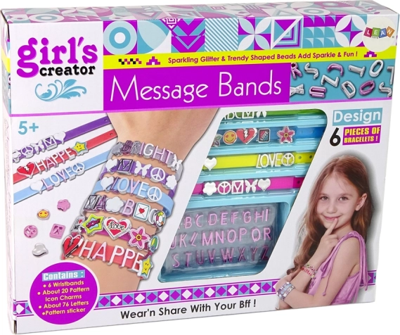 Rozbudowany zestaw zawiera wszystkie niezbędne elementy do wykonania spersonalizowanych bransoletek. Może tworzyć bransoletki z imionami najlepszych przyjaciółek i podarować je jako oryginalny prezent.