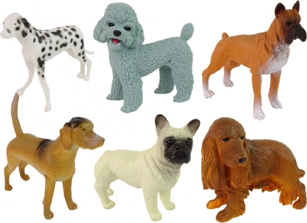 - 6 realistycznych figurek – dalmatyńczyk, mops, pudel, cocker spaniel, bokser, rottweiler