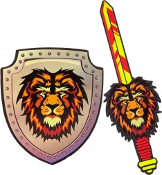 Rycerski zestaw z wytrzymałej pianki EVA pobudza wyobraźnię i odwagę małych odkrywców. Miecz i tarczę zdobi wyrazisty motyw lwa, który nadaje dziecięcej zabawie w rycerzy autentyczny charakter, a jednocześnie zabawka pozostaje maksymalnie bezpieczna.