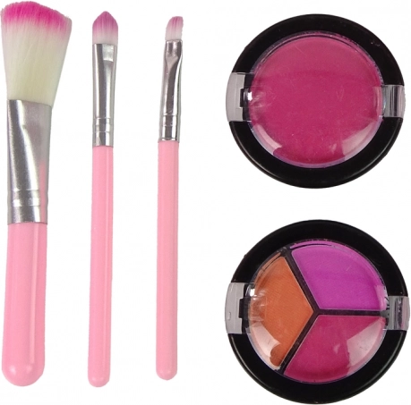 Dziecięcy zestaw kosmetyczny ze szczotką, pędzlami i makijażem bez parabenów. Bezpieczny, zmywalny, certyfikaty EN 71 i CE. Idealny dla dzieci od 3 lat.